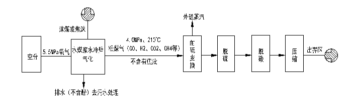 组成% | 45 | 35 | 19 | 0.5 | 0.5 | 0 | 纯氧连续气化 |