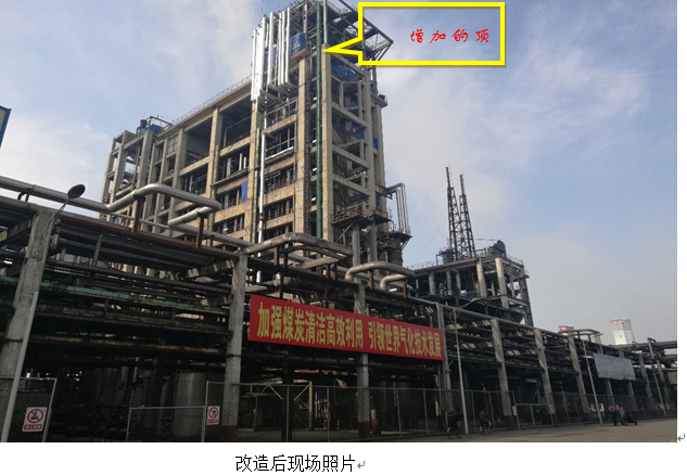 气化炉现场改造于2015年11月份开始建设, 2015年11月底气化炉已吊装到位,水冷壁安装到位并完成了探伤和试压,2015年12月份煤浆管道、水冷壁水循环管线配管结束,2016年1月份氧气管线结束,全部配管及相关仪表安装于2016年1月中旬完成,2016年2月进入实际试车阶段。